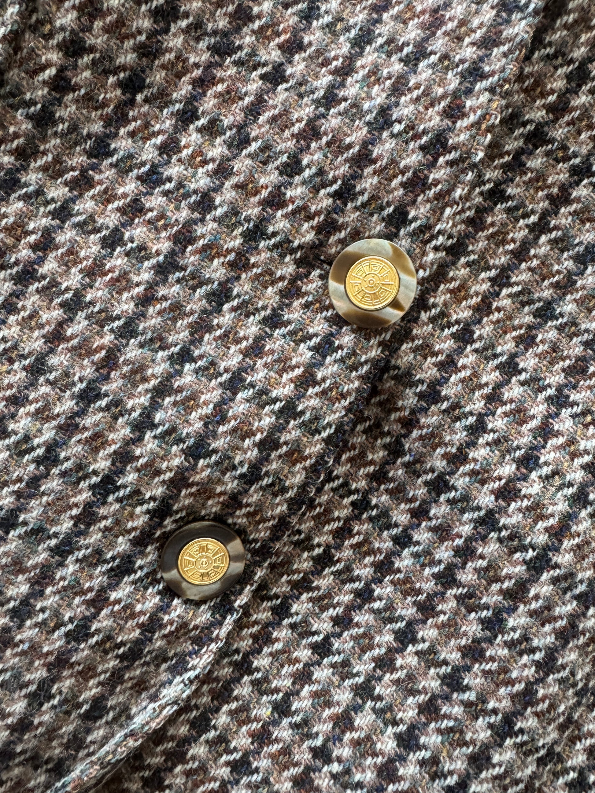 Este blazer es una joya hecha a mano con Harris Tweed, una de las telas más icónicas y exclusivas del mundo. Tejida en telar manual en las Islas Hébridas Exteriores de Escocia, cada pieza con este sello está certificada por su autenticidad, durabilidad y belleza natural. No hay dos iguales.